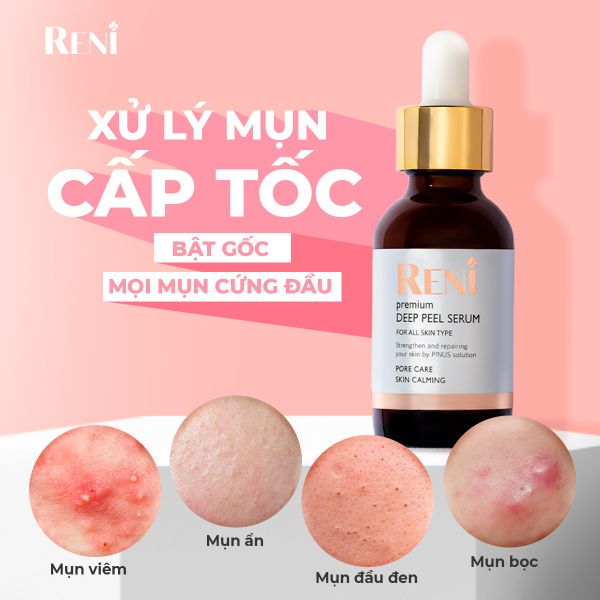 Đây là serum peel cải tiến 2025 của RENI – phiên bản đặc biệt dành cho da mụn ẩn, da bít tắc hoặc da xỉn màu lâu ngày. Sản phẩm kết hợp công nghệ Pinus C Solution – chiết xuất từ thông đỏ cùng các acid nhẹ (AHA, PHA tự nhiên) giúp đẩy nhân mụn an toàn, làm sạch sâu và tái tạo da sáng khỏe.